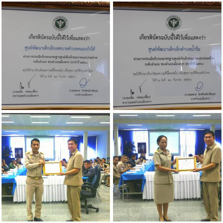 วันนี้ประชุมหัวหน้าส่วนราชการของอำเภอเมืองตาก ท่านนายอำเภอมืองตาก ได้มอบเกียรติบัตรให้แก่ศูนย์พัฒนาเด็กเล็กจำนวน 5แห่งของอ.เมืองตาก ที่ได้รับการรับรองมาตรฐานศูนย์เด็กเล็กคุณภาพและปลอดโรค ประจำปี 2560 ในโครงการพัฒนาศูนย์เด็กเล็กคุณภาพและปลอดโรค ของ สสอ.เมืองตาก